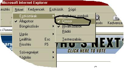 Eszköztár menüpontjának Címsor menüpontjára! |