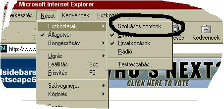 menüpontjának Eszköztárak menüpontjára,