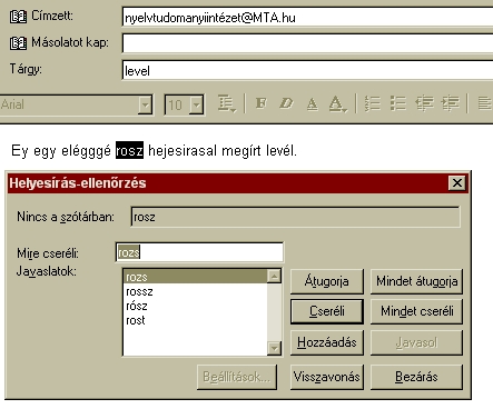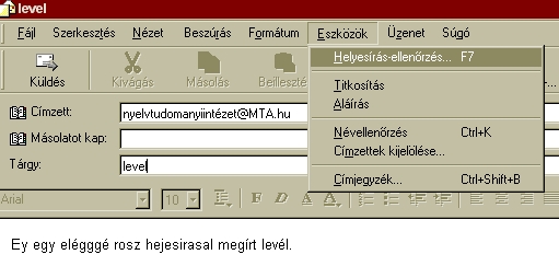 menüpont Helyesírás-ellenőrzés