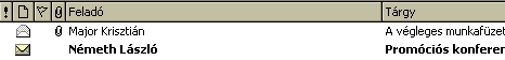 A felkiáltó jel a sűrgősségi mutatót jelzi, a gemkapocs a csatolt állományt, a kis zászló egy egyszerű jelző. |